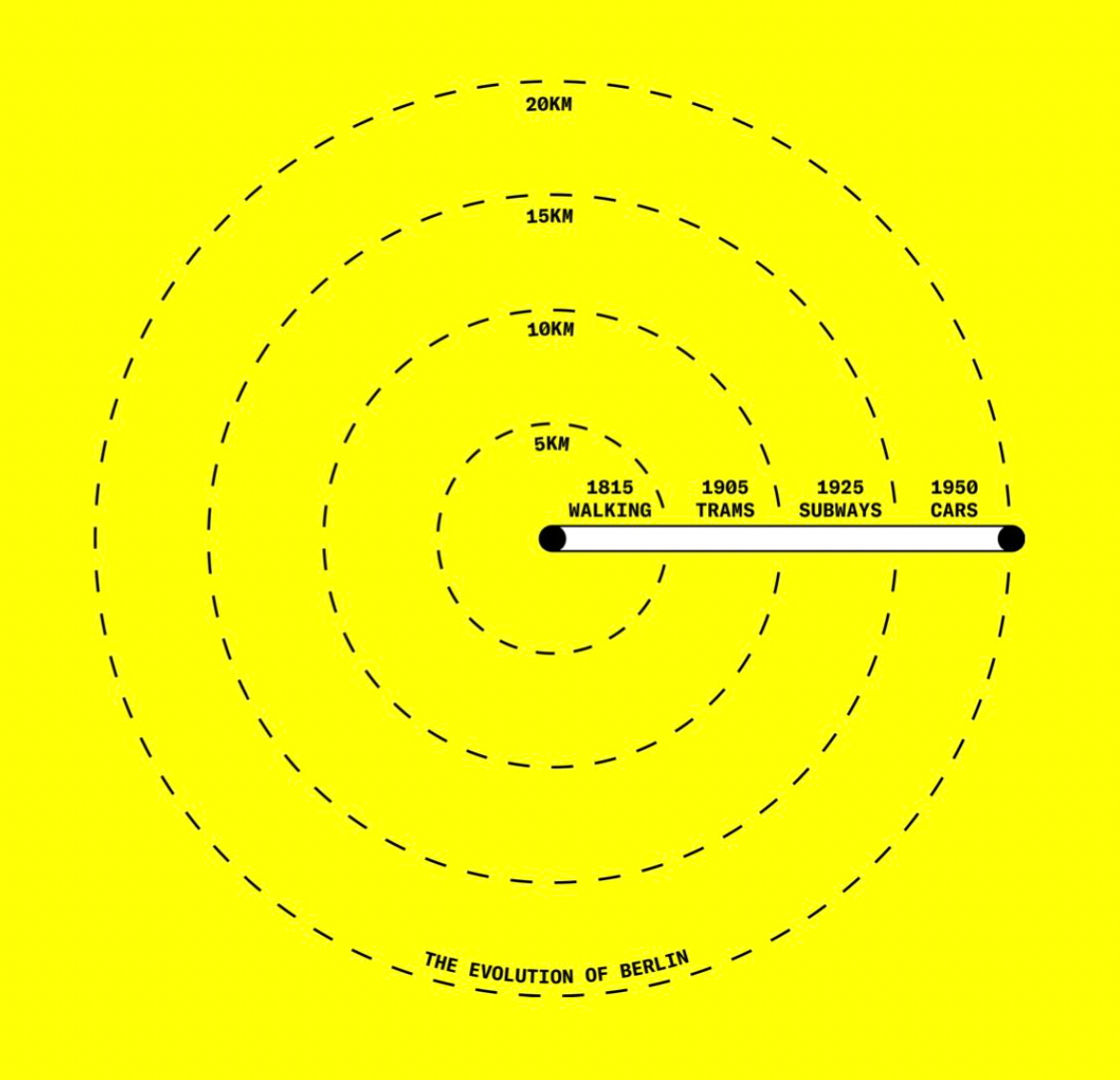 Για χιλιάδες χρόνια, όσο μετακινούμασταν με τα πόδια, οι περισσότερες πόλεις είχαν περιορισμένο μέγεθος. Η μέση ταχύτητα που περπατάμε είναι περίπου 5 χλμ/ώρα, κάτι που μεταφράζεται σε 2,5χλμ τα 30 λεπτά. Πράγματι, η Αρχαία Ρώμη ή το μεσαιωνικό Παρίσι δεν ξεπέρασαν σε διάμετρο τα 3 χλμ. Μετά ήρθαν το τρένο, το ποδήλατο, το τραμ, το μετρό, και τέλος το αυτοκίνητο, και οι αποστάσεις μεγάλωσαν. Όσο τα μεταφορικά μας μέσα πήγαιναν πιο γρήγορα, αντί να ξοδεύουμε για τις μετακινήσεις μας λιγότερο χρόνο, απλά φτάναμε μακρύτερα.